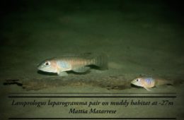 Łacińska nazwa odnosi się do pasków na bokach ryby. Gatunek ten znany jest również jako exLamprologus laparogramma, Neolamprologus laparogramm...